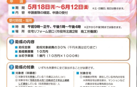 伊勢崎市より、住宅リフォームに使える助成制度が発表されました。